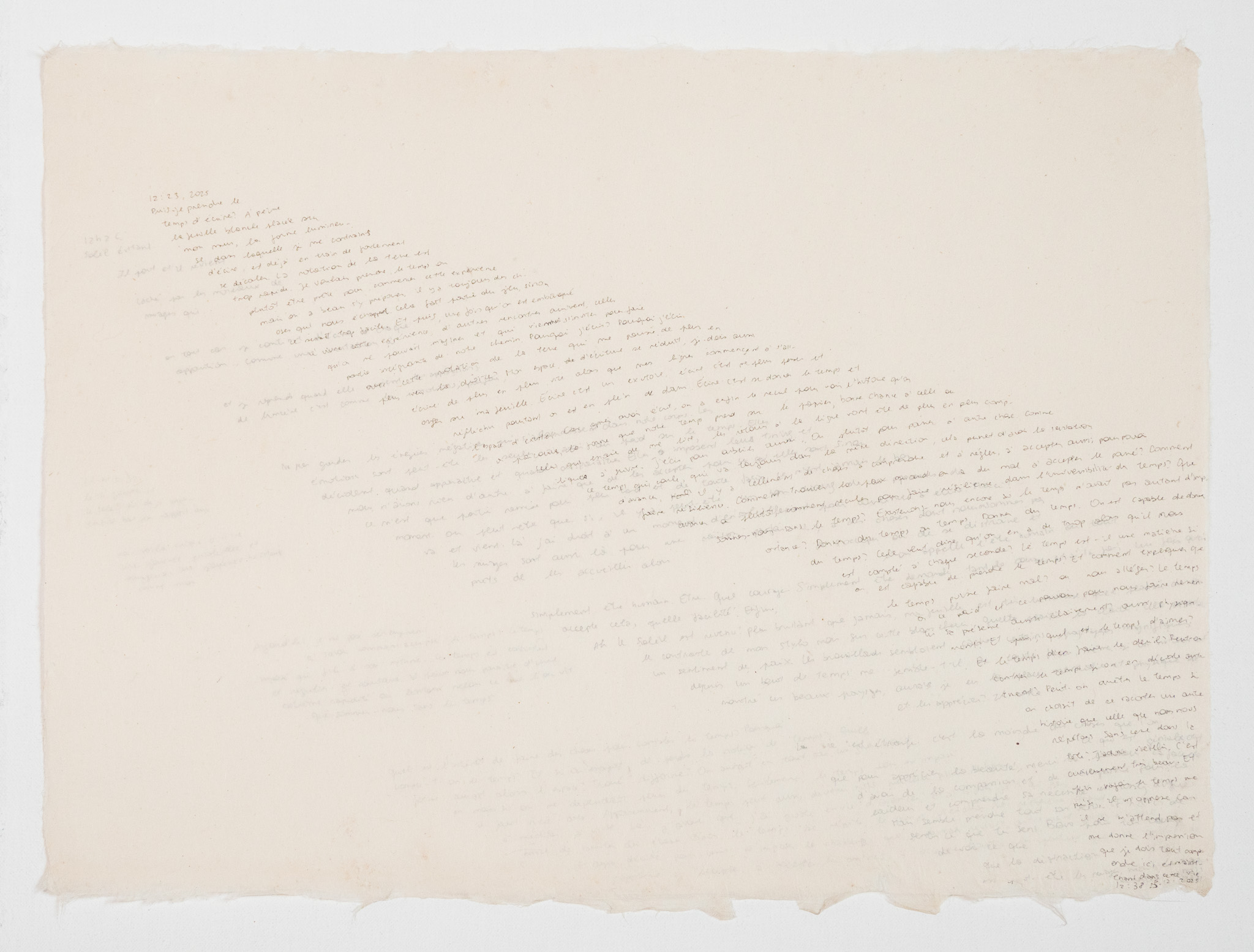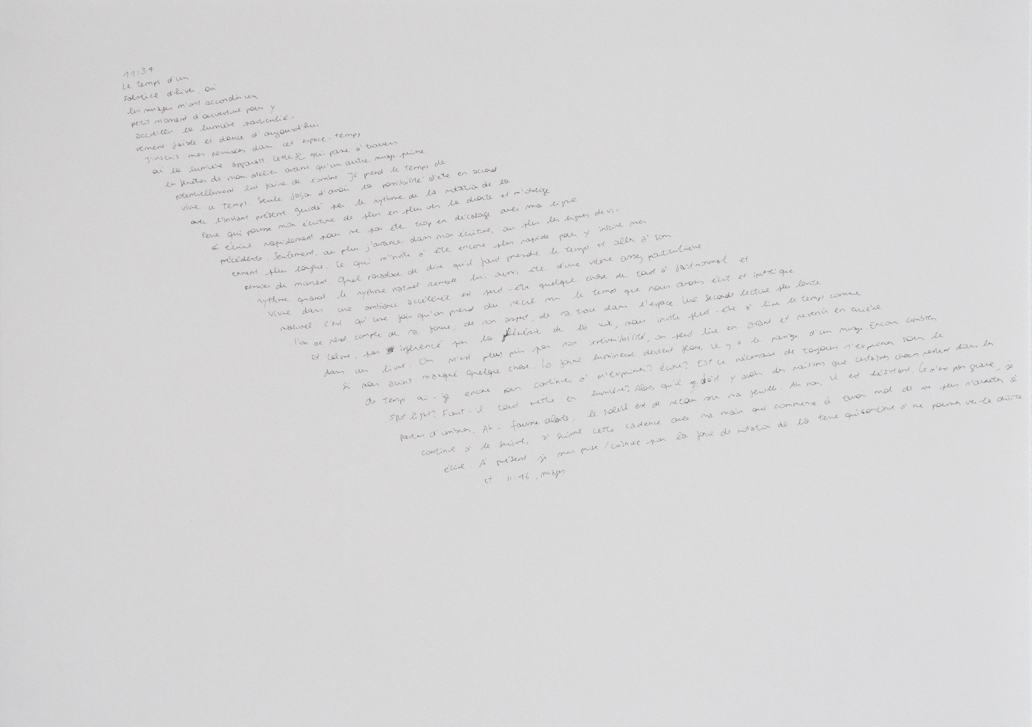 lenteur du végétal, rapidité de la rotation de la terre, instant fugace de la lumière, patience du geste.